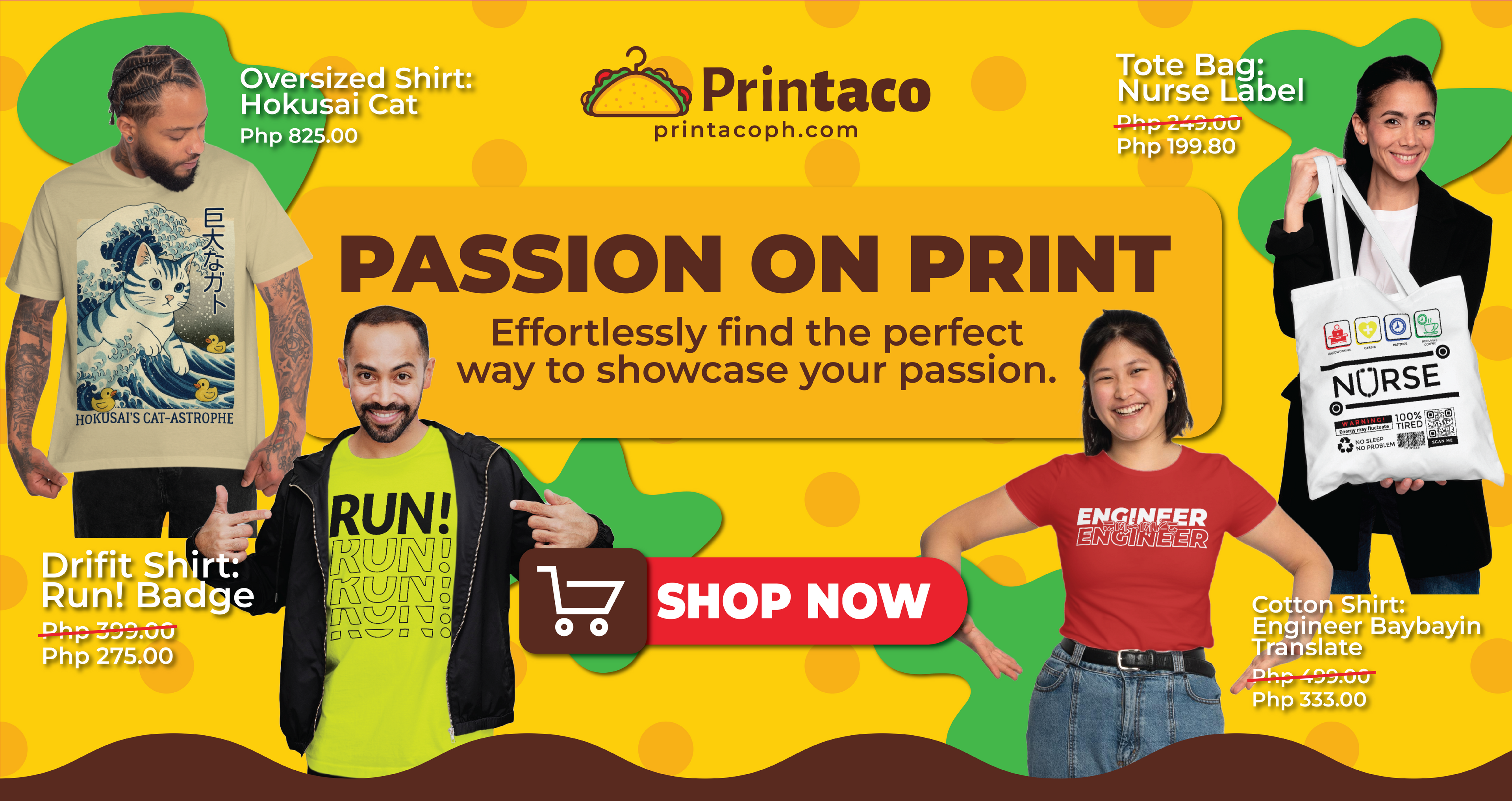 Want to sell your own shirts? Partner with us! Hit us up in our Facebook Page for more info on how to be a partner. You can also email us at contactus@printacoph.com.