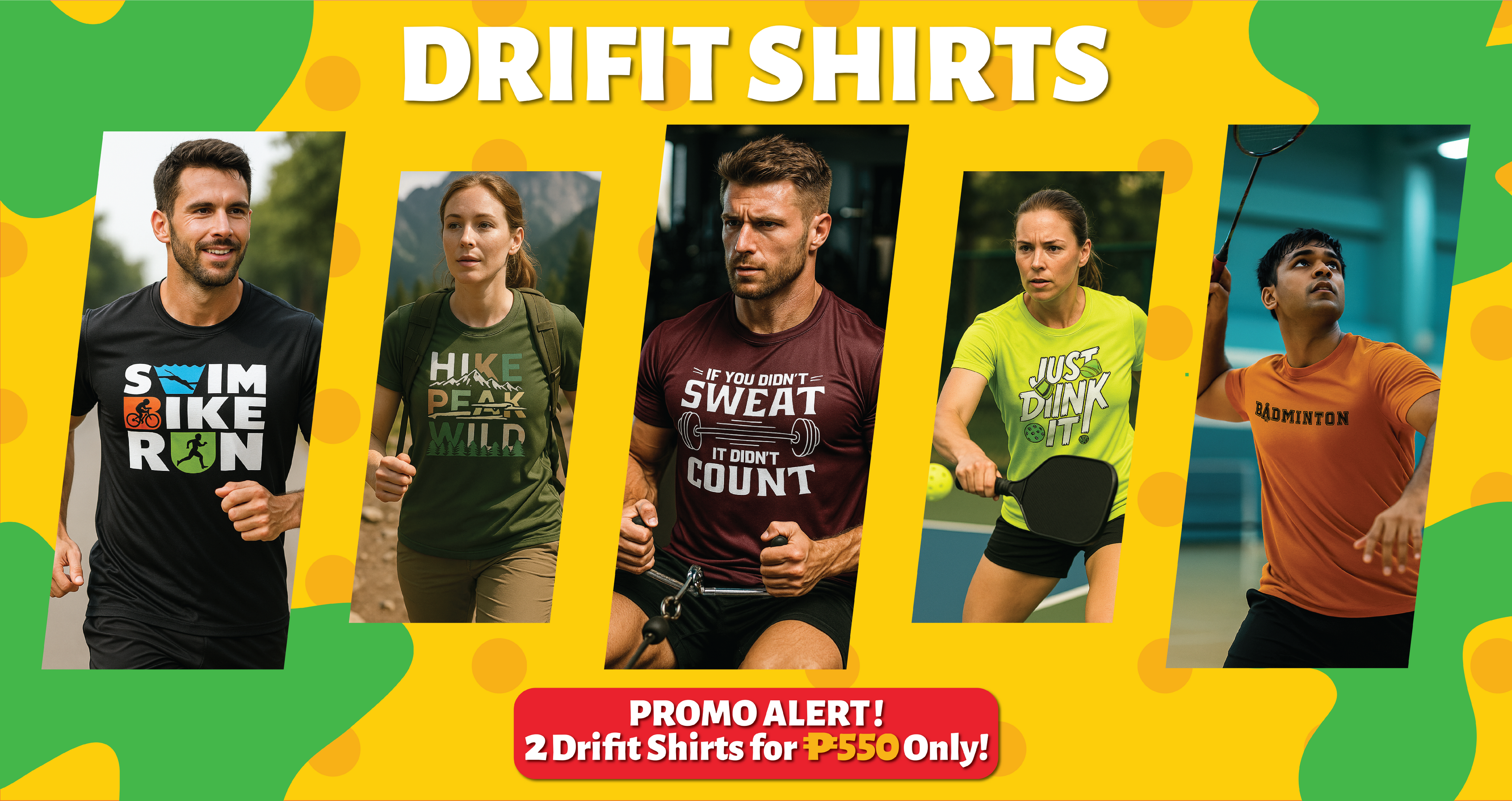Available Promos 2 Drifit Shirts for 550 PHP! *Different categories can be...